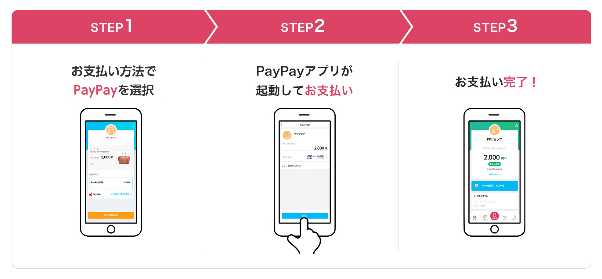 ご注文後、PayPayのアプリまたはサイトに移動しPayPay残高での支払いをご利用いただけます。