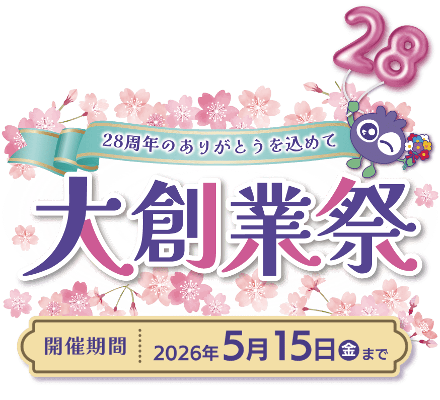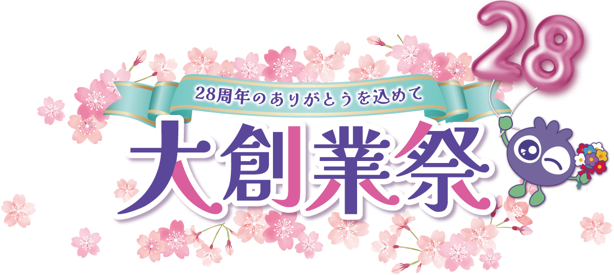 28年前の4月、初めて『ブルーベリーアイ』のご注文をいただいたことが、すべての始まりでした。多くの皆さまに支えられ、28周年を迎えられました。 心からのありがとうを込めて大創業祭を開催いたします。