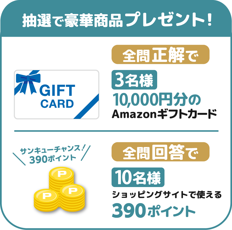 第1弾、第2弾合わせて全問答えると合計で45ポイントをプレゼント!