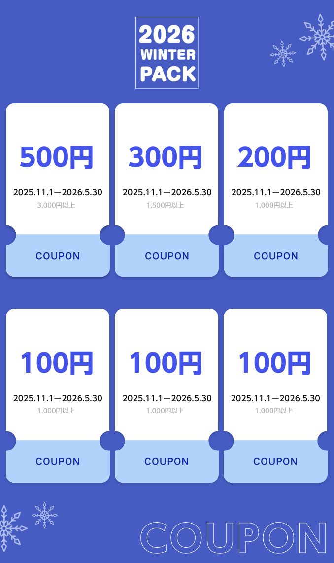 ※クーポンは購入後自動発行されます。ゲスト注文の方はクーポンが発行されないため、必ずログイン後、ご購入ください。