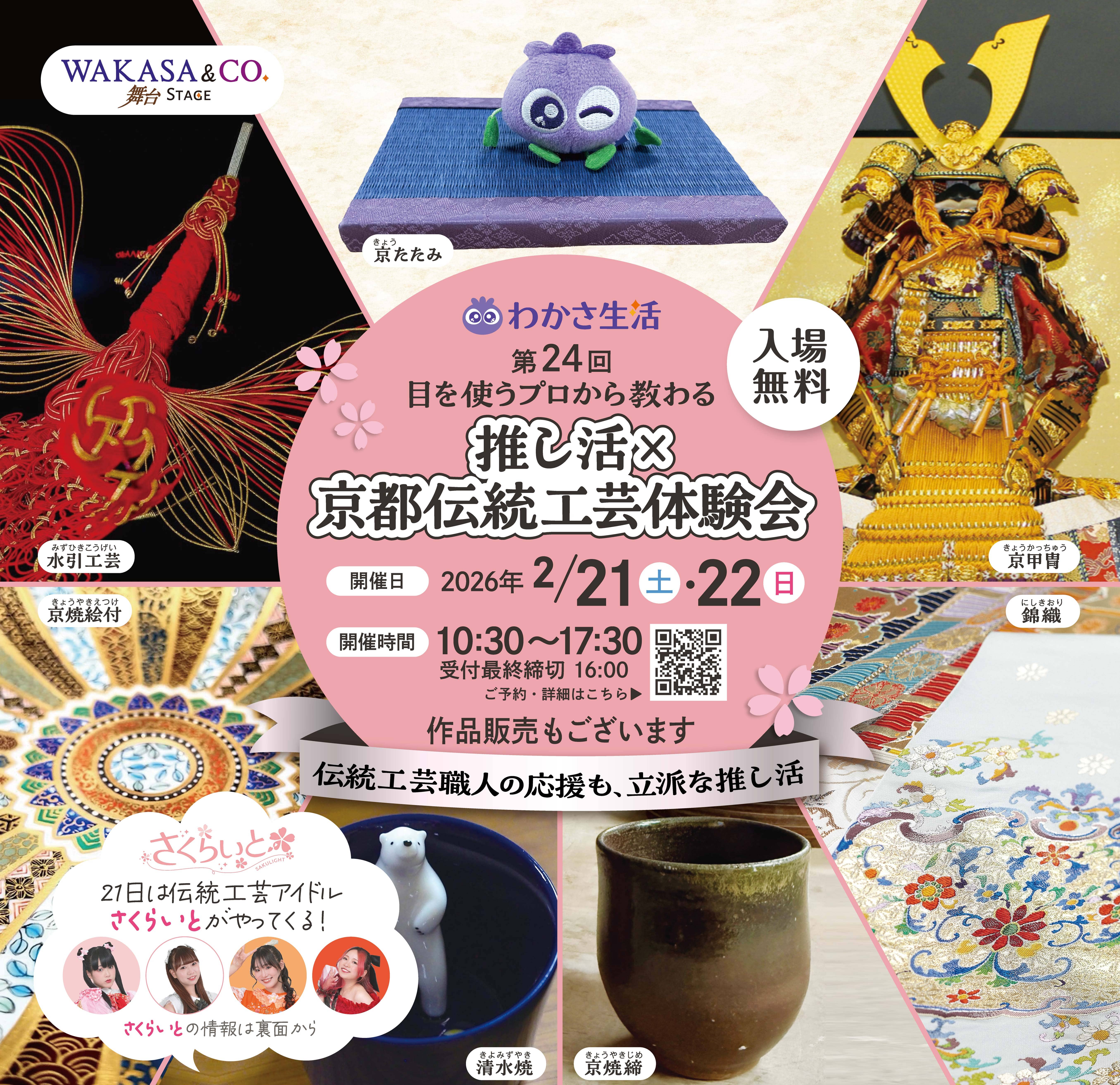 わかさ生活京都本社2階のWAKASA&CO.「舞台 STAGE」に7つの工房を招いて第24回 京都伝統工芸体験会を行います。