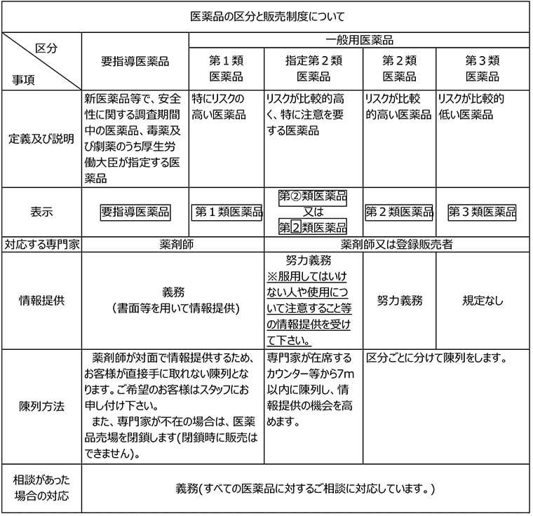 指定第2類医薬品、第2類医薬品、第3類医薬品 |