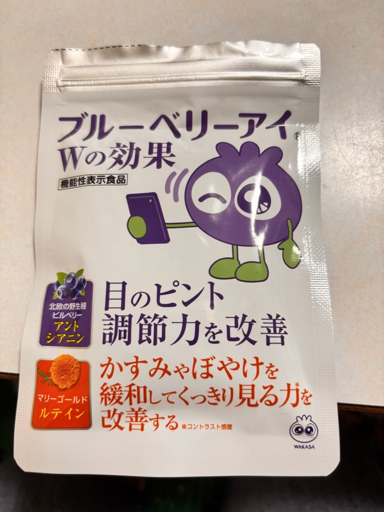 40才の頃、1年間程ブルーベリーのサプリを飲用していましたが、最近、老眼も進みピントも合わなくなってきているのを実感していました。