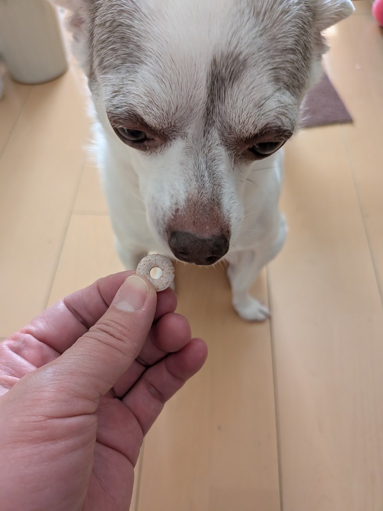 うちの子はチワワで小さいのでラムネの様な硬さのサプリが食べられるか心配でしたが、簡単に半分に折り美味しそうに食べてます。涙が出る事が少なくなった気がします!続けてみまたいと思います。